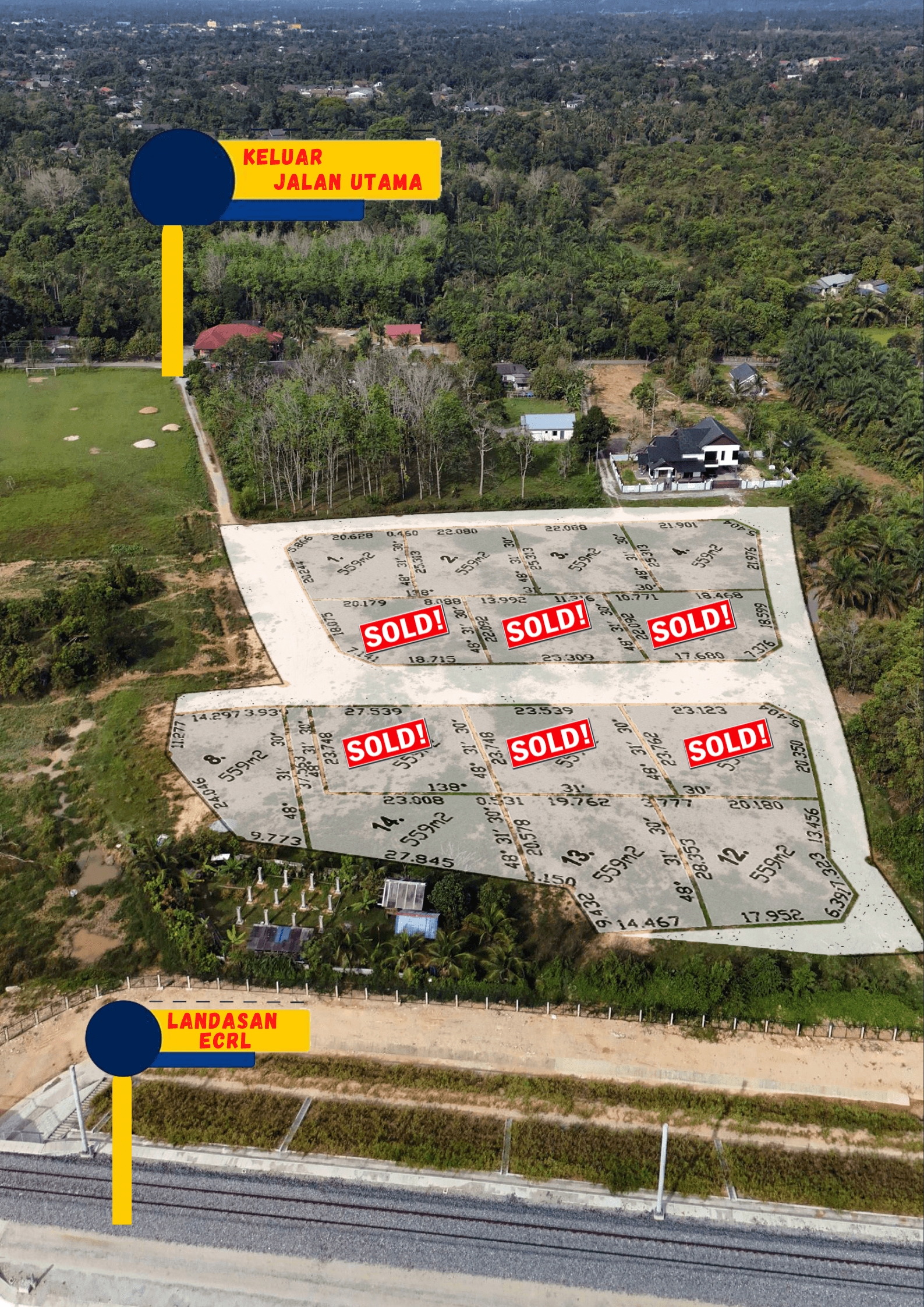 Pilih lokasi berdasarkan kemudahan asas (jalan, air, elektrik), potensi pembangunan kawasan, dan akses ke bandar utama seperti Kuala Terengganu atau Gong Badak.