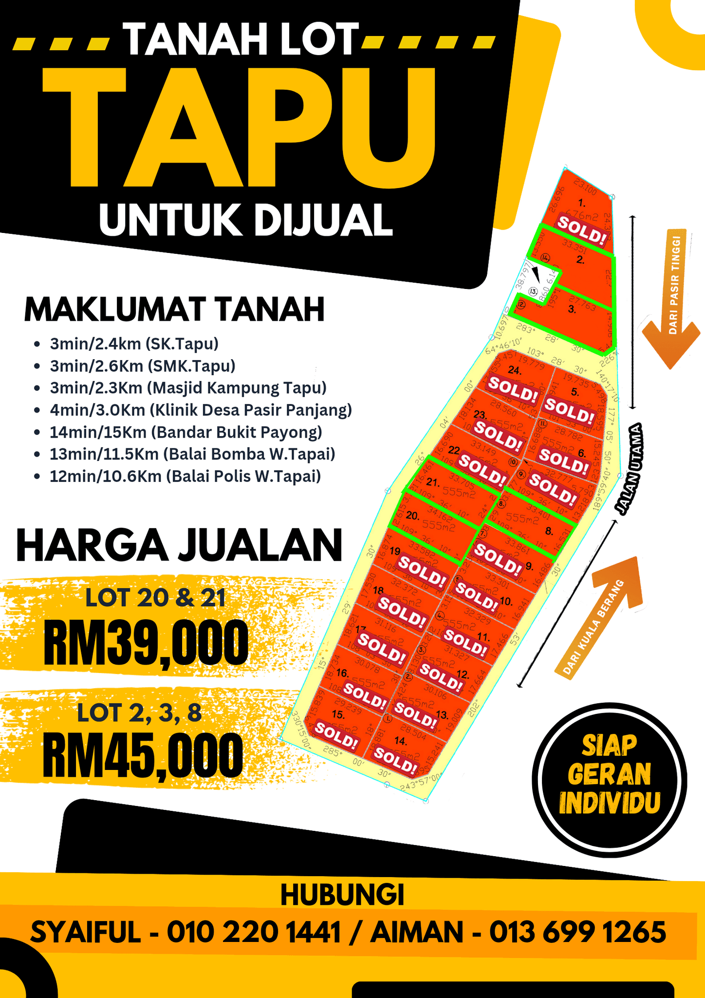 Kami juga membuka jualan untuk tanah lot dalam proses pecah sempadan dengan tawaran harga Promo
